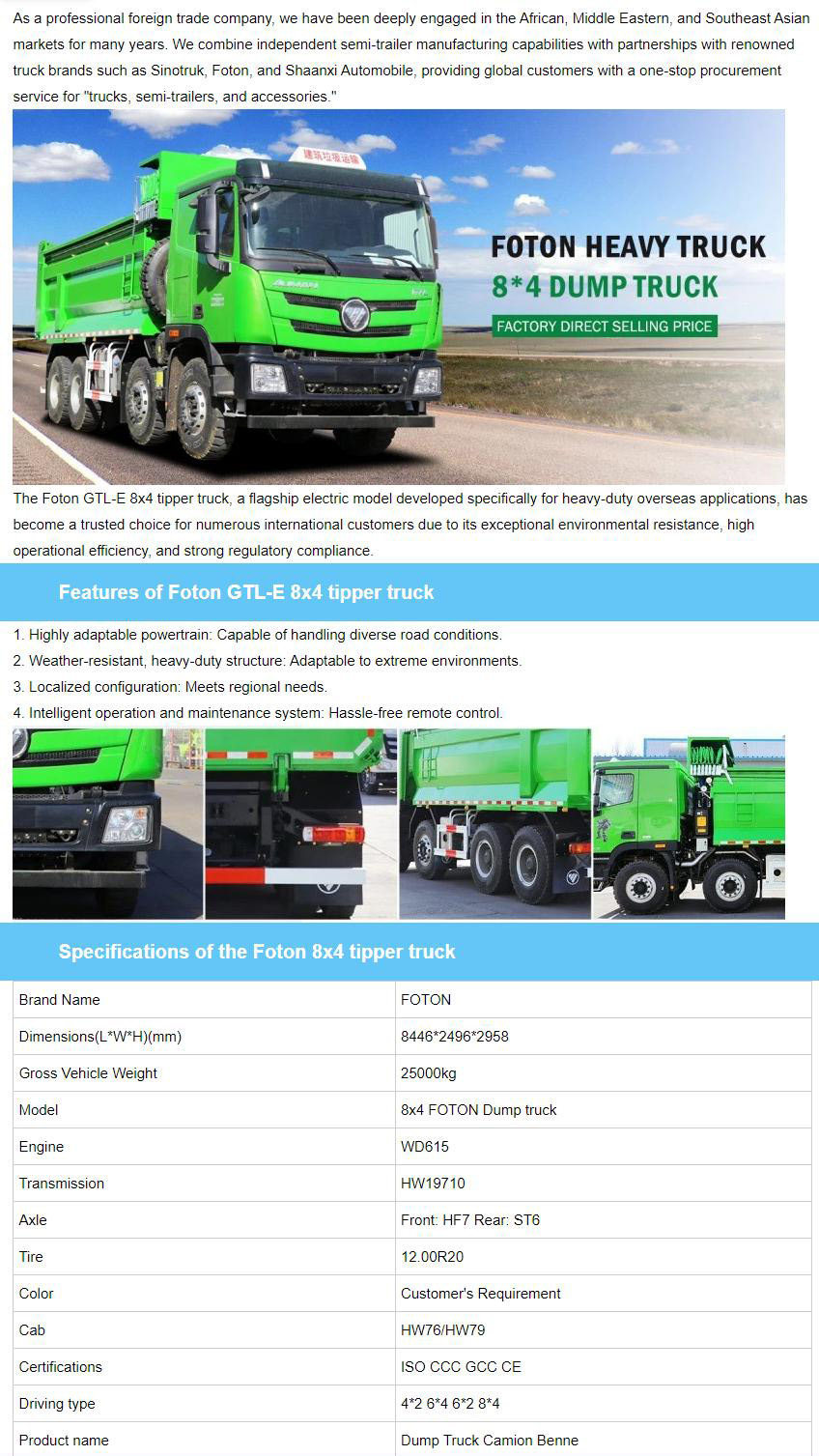 Foton GTL-E 8x4 Tipper Truck