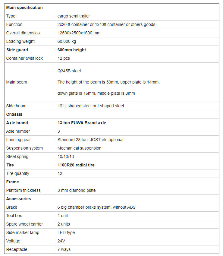3 Axle 40FT Side Wall Cargo Transportation Semi Trailer