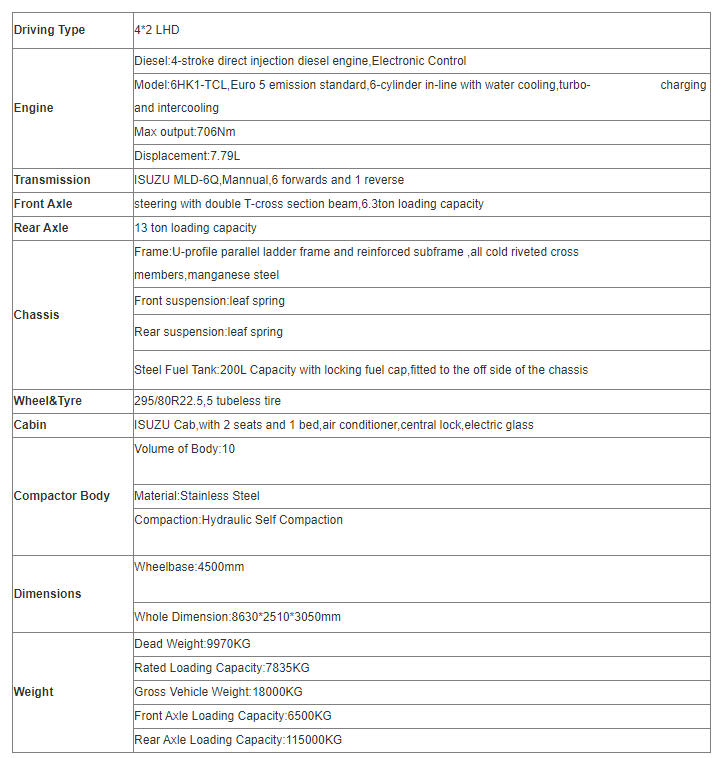 China Factory 10 Ton 240HP ISUZU GARBAGE Compactpr TRUCK