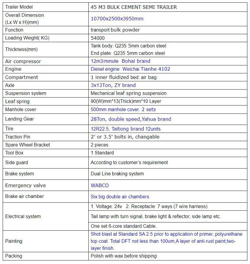 New 40Ton Cement Tanker Semi Trailer 3 Axle Bulk Carrier For