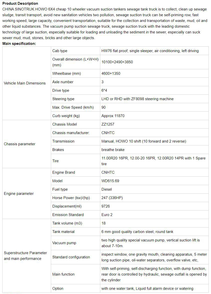 China SINOTRUK HOWO 6X4 Cheap 10 Wheeler Vacuum Suction Sewa