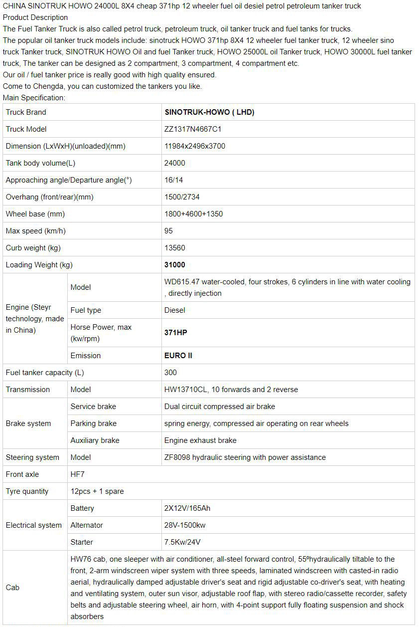 China SINOTRUK HOWO 24000L 8X4 Cheap 371HP 12 Wheeler Fuel O
