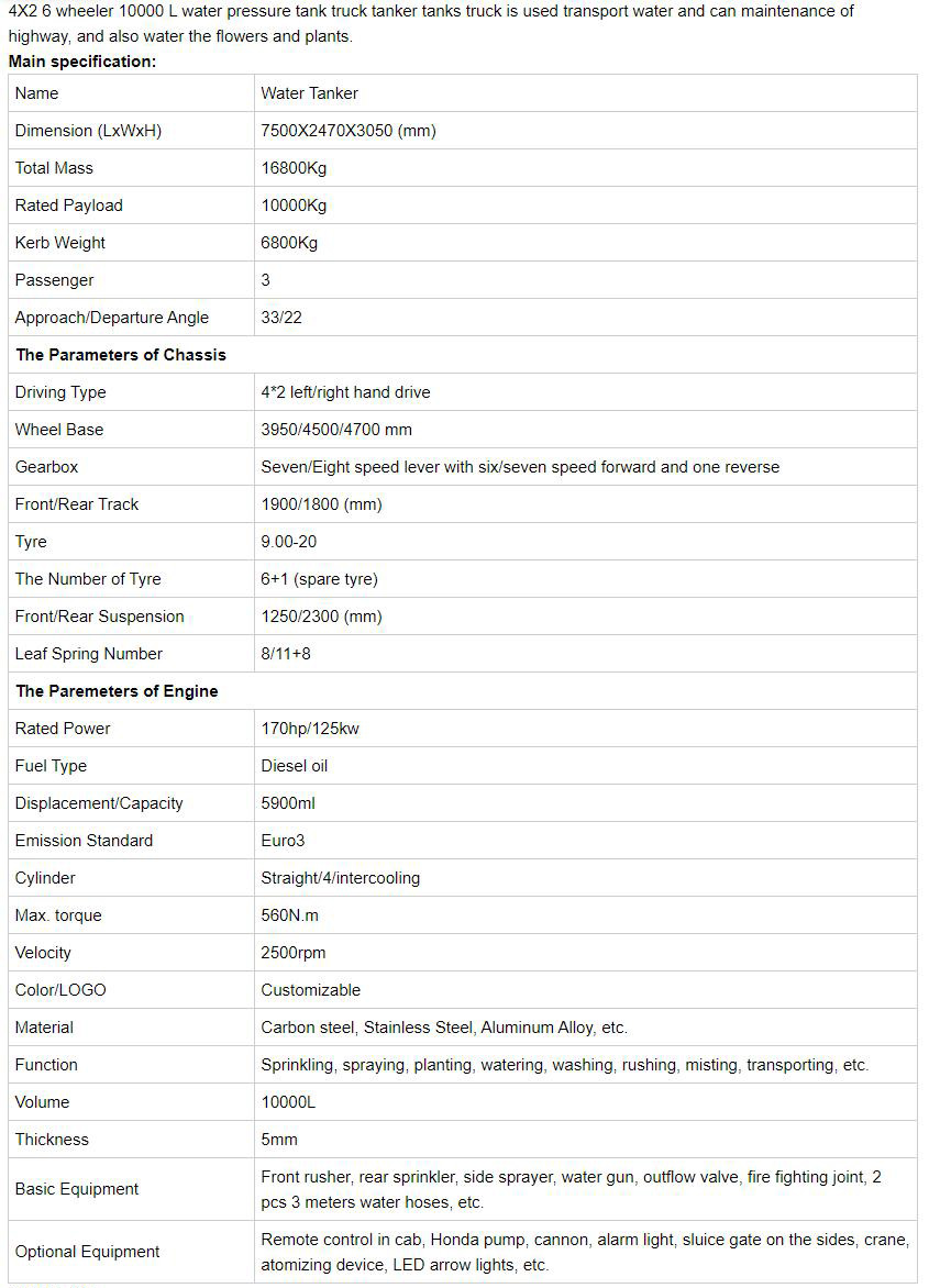 SINOTRRUCK 4X2 6 Wheeler 10 000 L Water Hauling Pressure Tan