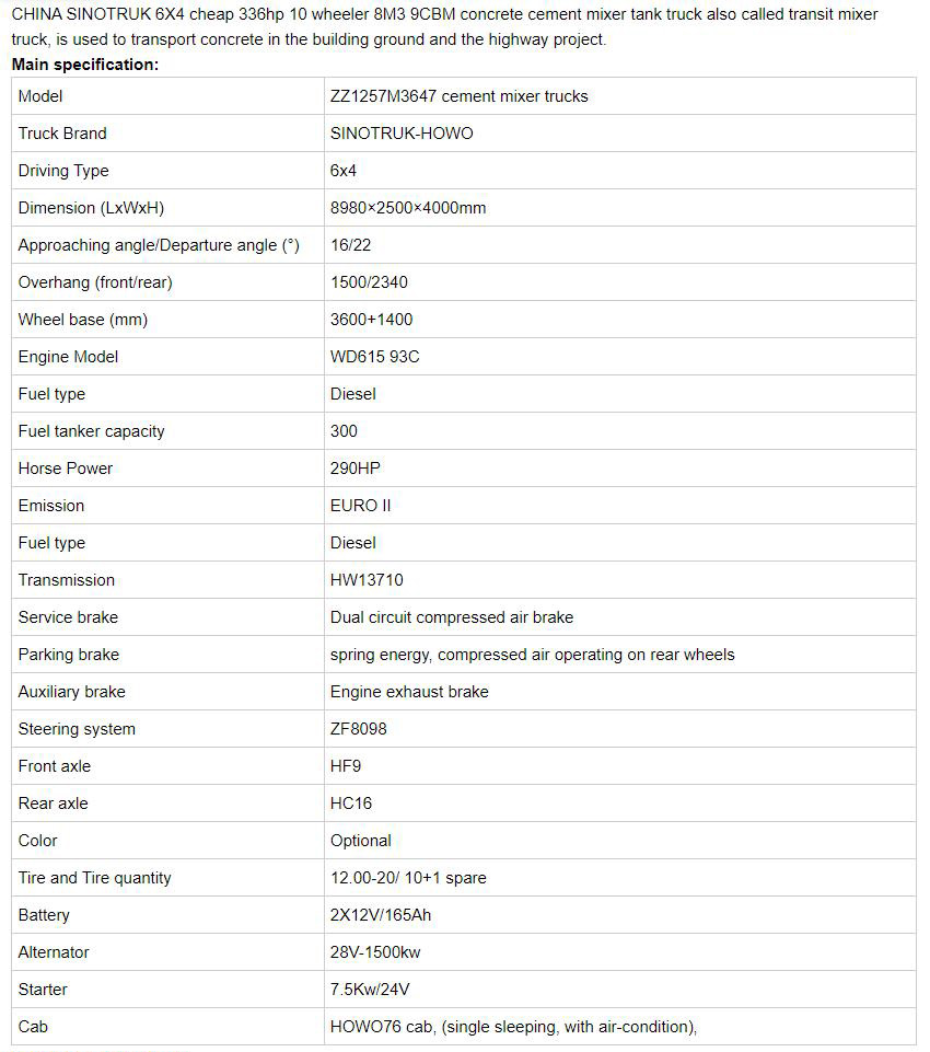 China SINOTRUK 6X4 Cheap 336HP 10 Wheeler 8M3 9CBM Concrete